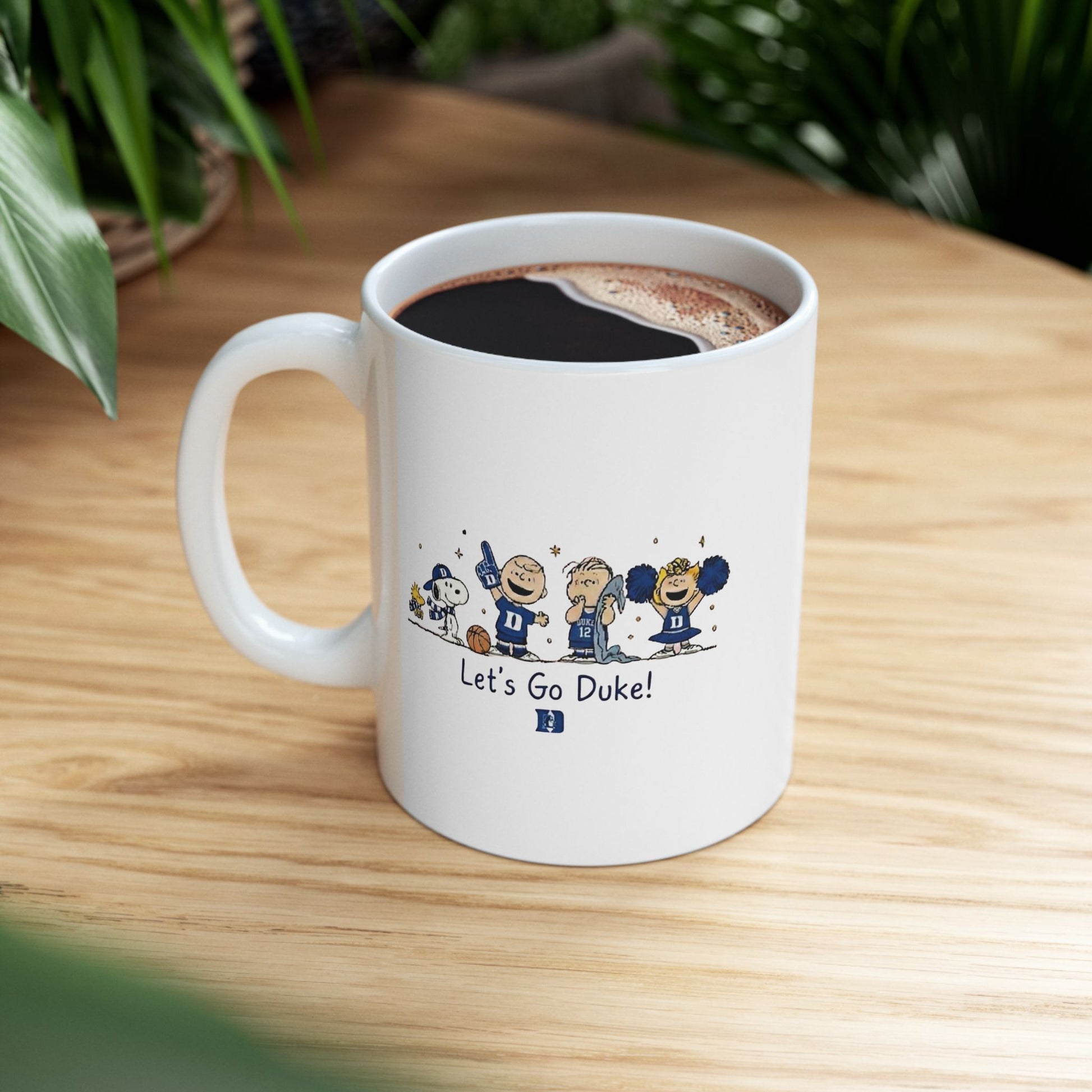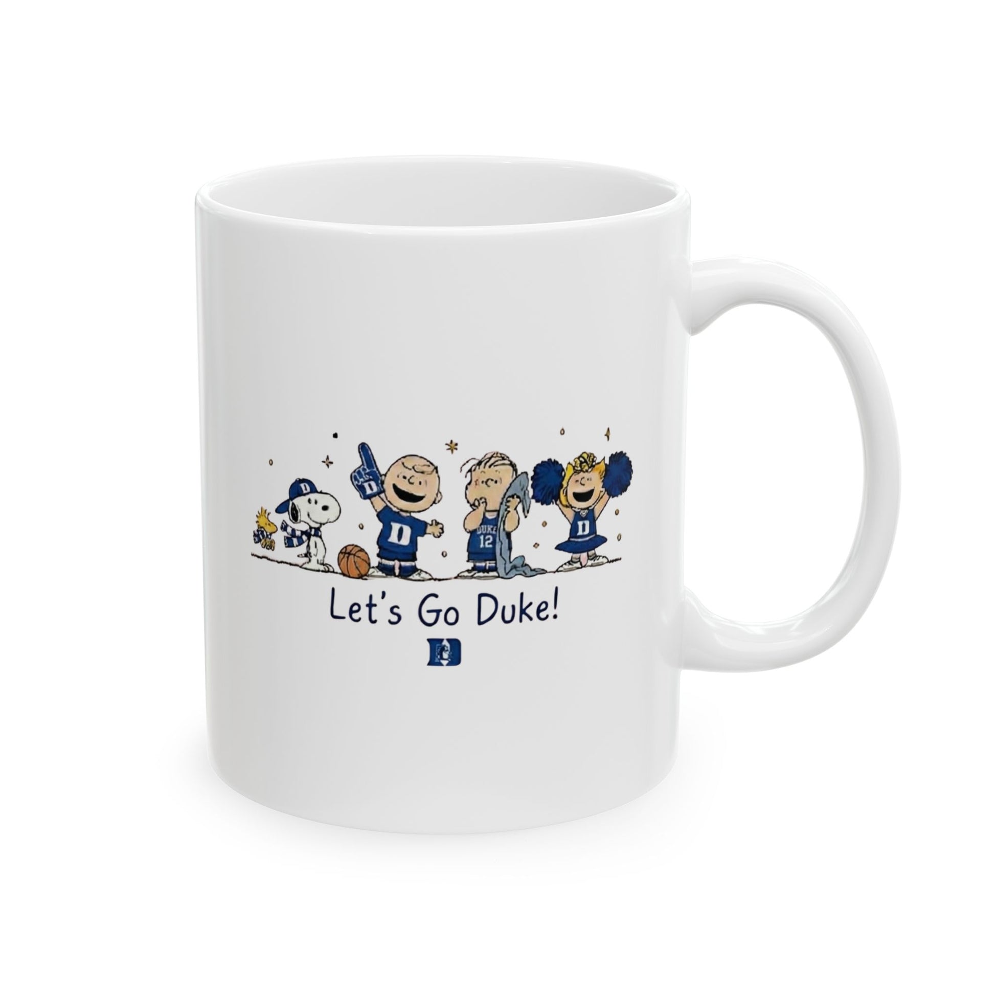 Start Your Morning with Durham Tradition. Bring a touch of nostalgic charm to your daily routine with our exclusive Character Collection coffee cup. This premium ceramic mug features a wrap-around graphic of our "Unexpected Fans"—a playful lineup of iconic animated friends fully geared up in Duke royal blue. Anchored by the classic university silhouette and a spirited collegiate sentiment, this cup is the perfect way to show your pride with every sip.