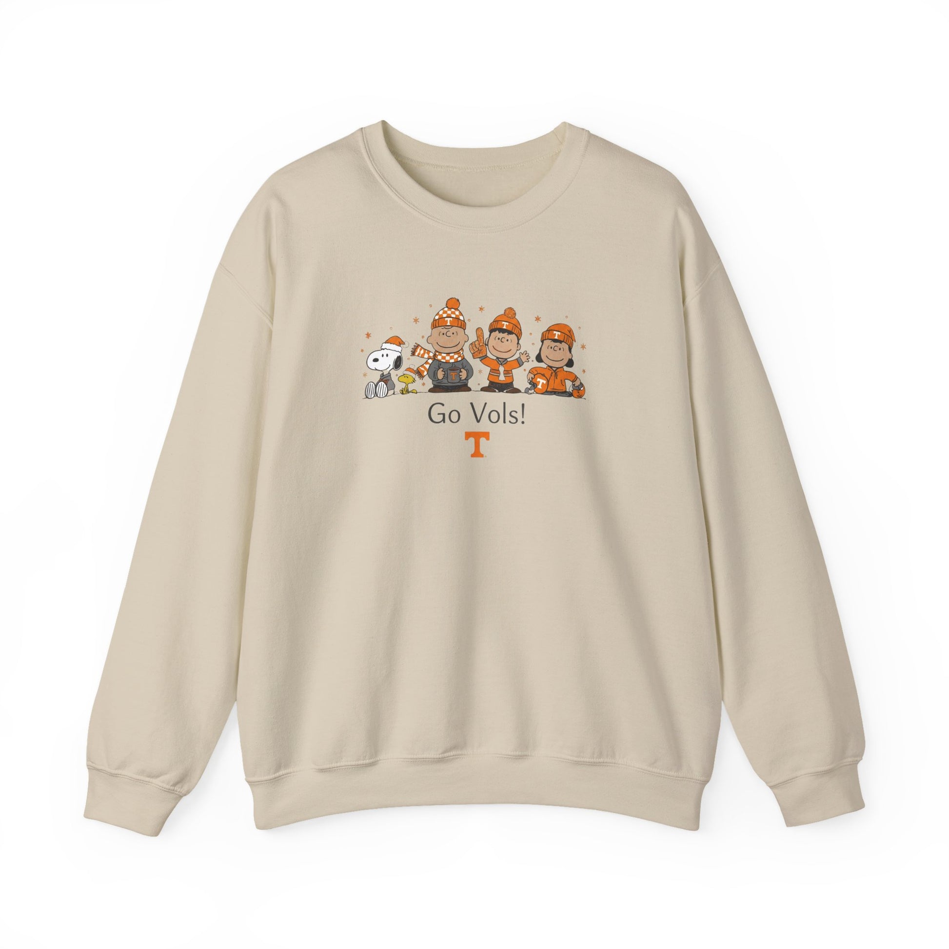 A Vol Tradition in Every Stitch. Celebrate the spirit of Rocky Top with a playful, vintage-inspired aesthetic from our exclusive Character Collection. This premium crewneck features a lineup of iconic animated friends fully geared up in university beanies, scarves, and orange-and-white gear. Anchored by a spirited university sentiment and the classic "T" logo, this piece perfectly blends nostalgic charm with collegiate pride.